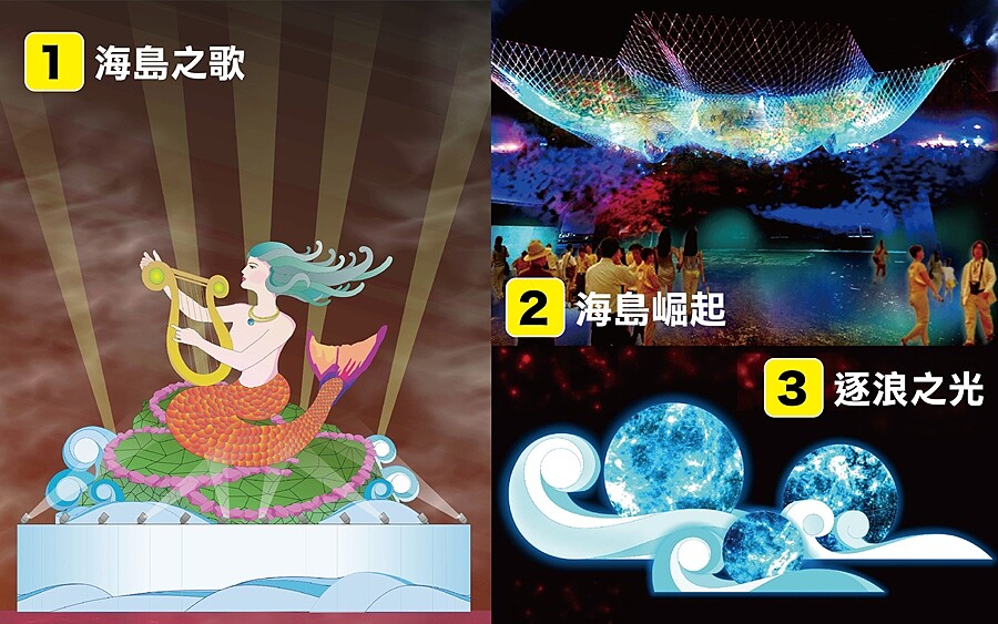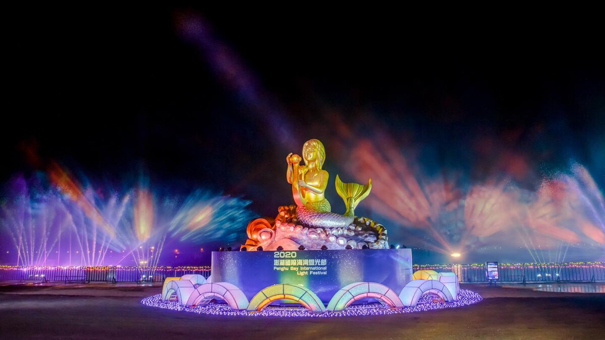以燈光為主要媒介,「2020澎湖國際海灣燈光節」期許打造出一場精彩絕倫的裝置藝術慶典。主燈會有高達8公尺美人魚「海島之歌」,並搭配海上燈光水舞秀「蓬勃之海」打造全台唯一海陸燈光展演秀。結合金龍頭港口海景與水域優勢,會將水舞秀拉高於水平面上3~4公尺、美人魚也會轉動一圈,將廣闊視覺與繽紛色彩魚尾身軀完美融合。