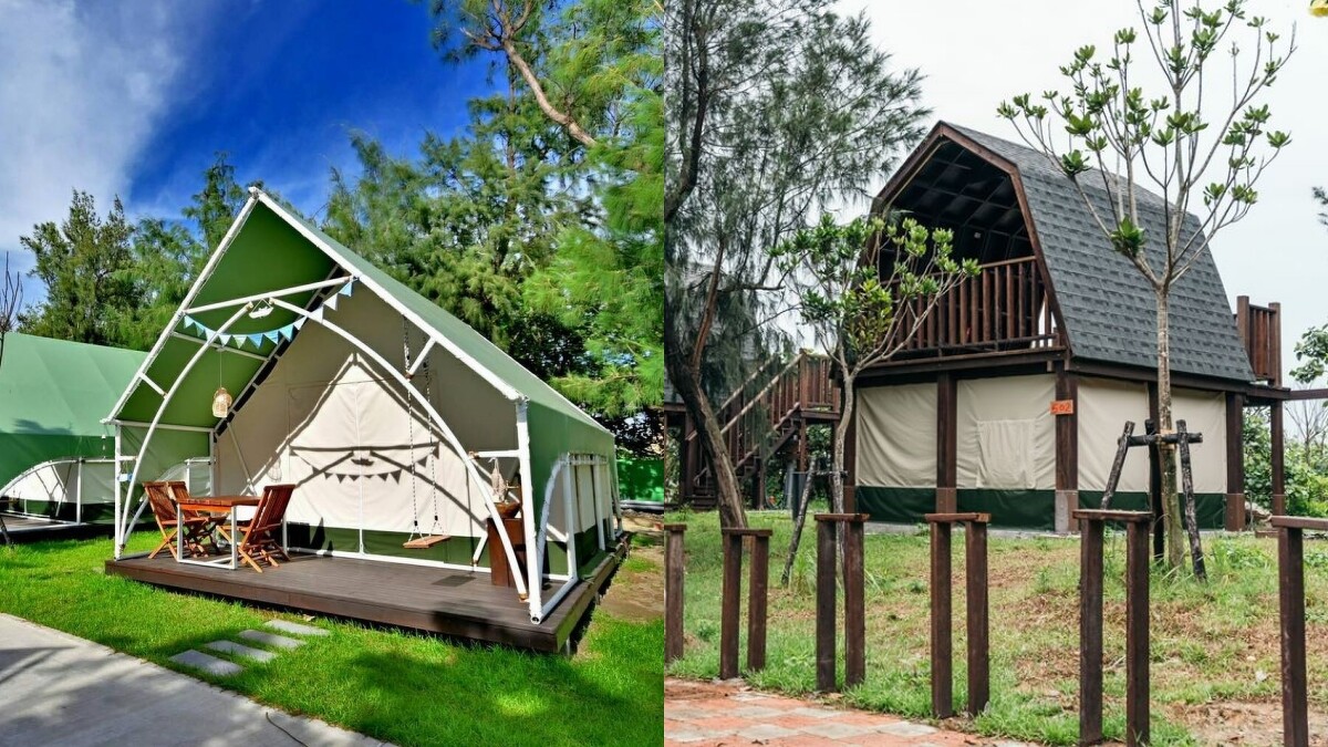 帳篷選用進口頂級帳篷帆布製作,具有防火、降噪、抗紫外線特性。寬敞的內部空間備有沙發、電風扇、冷氣機、床墊與獨立衛浴,帶上簡單行囊就能入住。外頭有步道、觀景台、戶外戲水池與滾球草皮,閨密或一家大小都能恣意散心、放電。