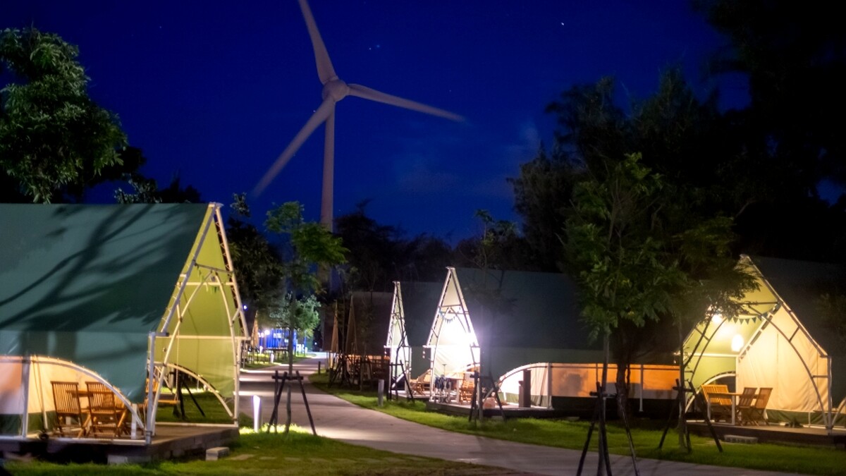 除了帳棚與公共設施,「向海那漾」也有多樣化體驗課程能參與,從沙雕手作課程、風箏手作課程、潮濕泥地發掘螃蟹到風箏衝浪通通有。周邊還有中部唯一的水筆仔林「紅樹林生態園區」、水蓑衣生態教育園區,也可以順遊大甲鎮瀾宮、大甲鐵砧山自行車道、高美濕地等熱門景點,讓這趟小旅行更盡興。