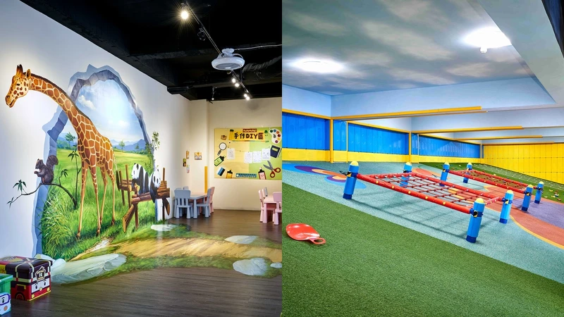 由生產瓦楞紙箱起家的「松風文旅」創辦人,將紙元素帶入飯店中,用瓦楞紙藝增添文藝氣息外,在各樓層放置充滿童趣風格的「瓦楞紙搖搖馬」,一秒勾起大小朋友的天真童心。10樓還有整層的「松兒樂親子館」,可說是兒童的放電天堂,從火車造型球池、滑草區、攀岩區及繩索等,創造屬於一家大小的溫馨回憶。