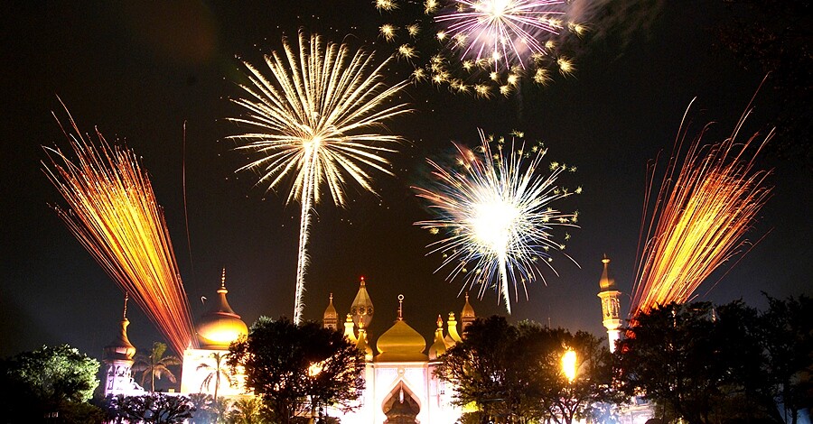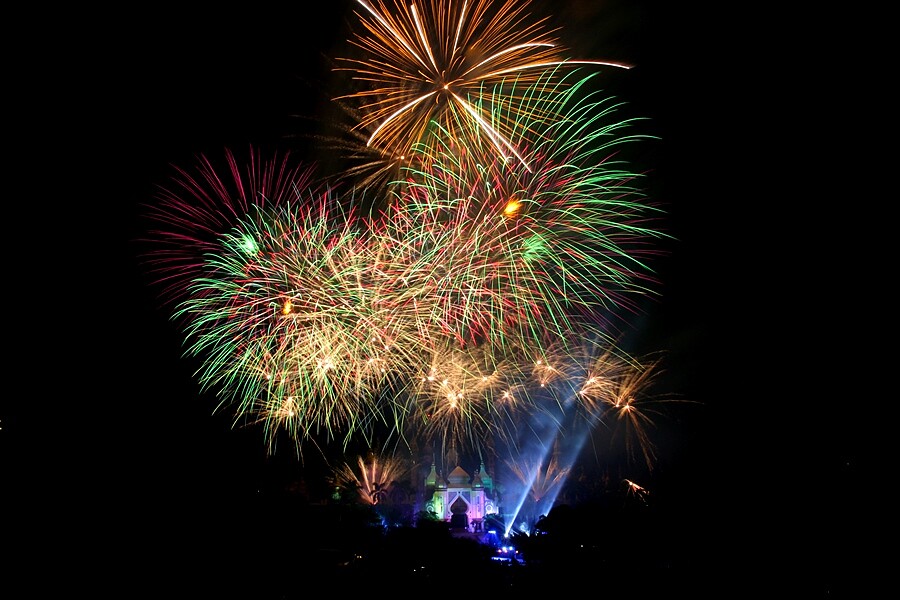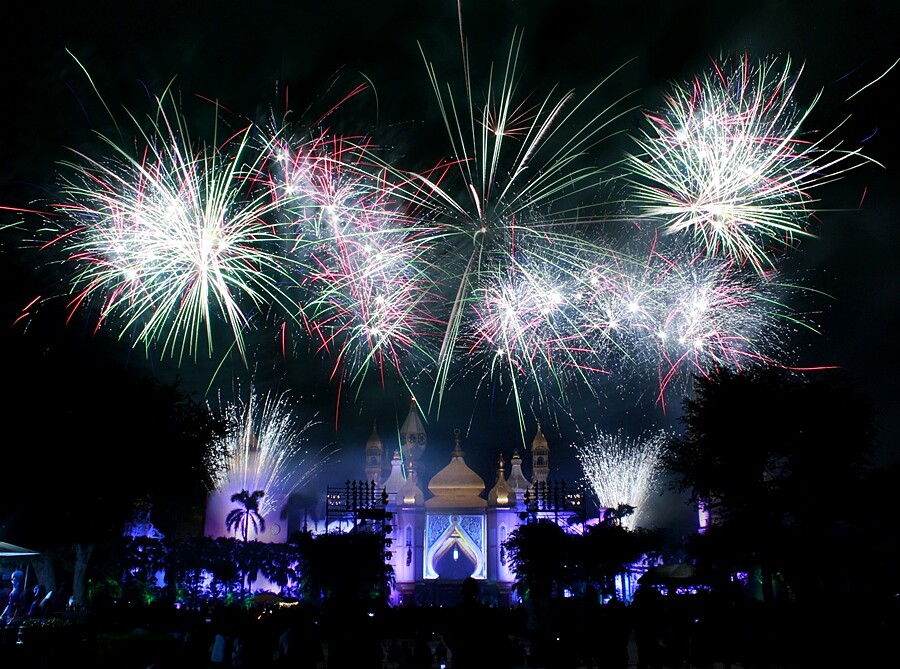 喜歡看煙火的人,這個暑假必衝一波六福村!在豐富遊樂設施能盡情紓壓後,晚上還有絢爛煙火秀等著你,而這更是睽違三年後回歸的人氣活動,將會在中央噴泉上放施放,映照著招牌阿拉伯皇宮,讓遊客留下難忘又美好的夏日回憶。