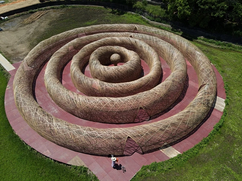 最吸睛作品,就屬29.2公尺巨大竹編迷宮外型「高雙陂塘漣漪迷宮」,藝術家李蕢至將童年時期的稻田景象作為靈感,要傳遞「人在尋找出路的過程中,每個路徑與轉彎都是美麗的」之意涵。
