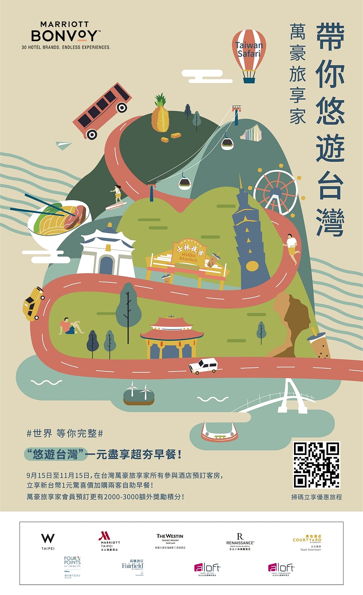 今年的國外旅遊計畫都被疫情打壞,不妨好好遊覽台灣、感受寶島之美!萬豪國際集團首次聯合台灣9間飯店,推出「悠遊台灣」住房超值禮遇,並祭出獎勵積分與豐富優惠,快點揪親朋好友、姐妹閨蜜出遊囉!