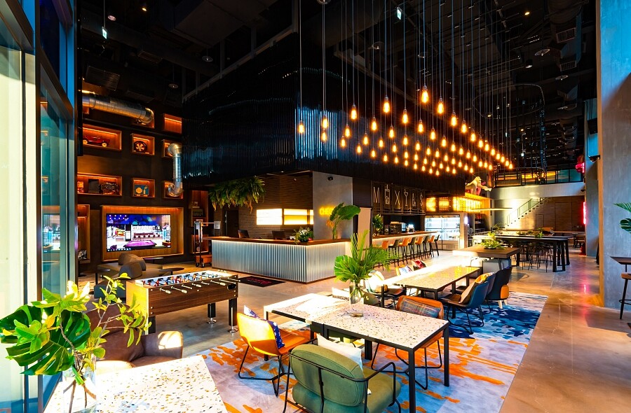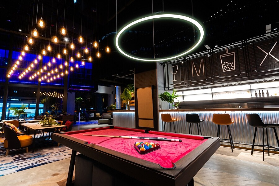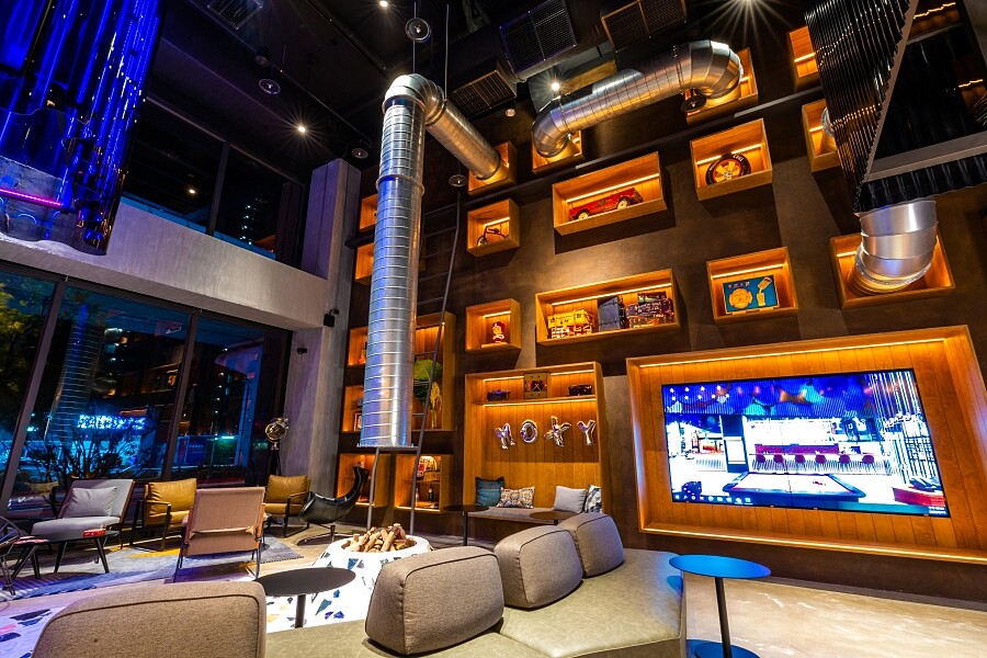 現代人人都是「斜槓」青年,酒店也呼應此現象,讓空間、設備都傳遞出此精神。大廳的The Moxy Bar身兼辦理入住與製作調酒吧檯;Arrival Zone、Social Zone及F&B Zone共有109個座位,能用來工作開會,也能用餐、玩遊戲、開趴,讓「沒有被分區定義的空間」成為一大特色。