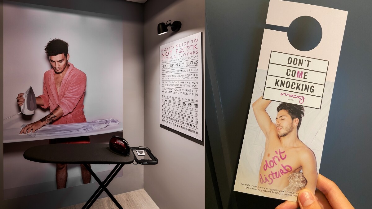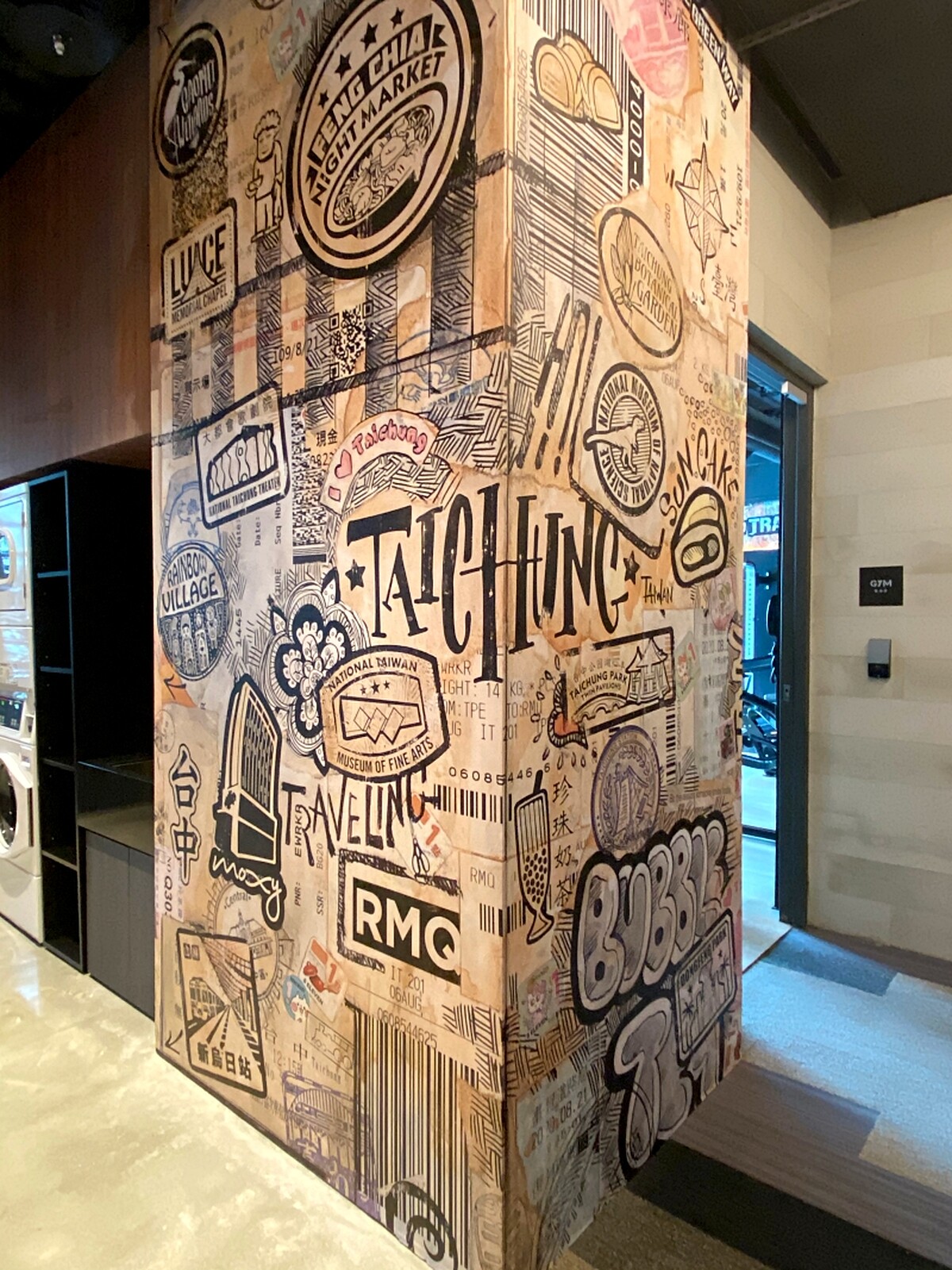 即便是新興國際酒店品牌,「台中豐邑Moxy酒店」卻隨處可見台中在地元素!從門外巨大珍奶裝置藝術、工業風的輕鋼架及風管、紅磚瓦與水泥牆都能感受滿滿台灣味。大廳的陳列有黑松汽水、大同寶寶元素,每一層電梯走廊都有台中景點印章,甚至還能在壁畫上找到彩虹眷村、逢甲夜市等知名景點。