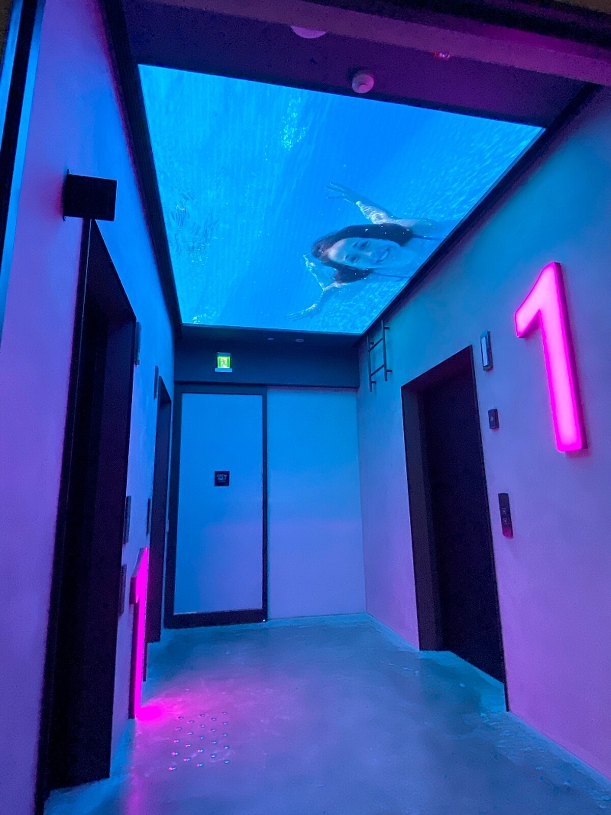 從內而外皆顛覆酒店印象之外,館內更充斥著許多視覺驚喜,等著旅客一一去發現!一樓電梯前打造成泳池氛圍,帶領旅客來趟身心靈遨遊小旅行;兩部電梯更有著「哈哈鏡」內裝,以及每層樓的燙衣間皆有「尺度不同」的牆面照片,讓每次入住、進出酒店都會有全新感受。
