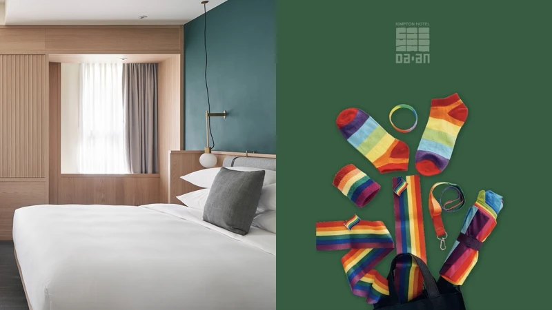 隱身東區巷弄間的金普頓大安酒店,不只客房內以綠色牆面與金屬點綴,公共空間處處都充滿設計感與藝術情懷。為了挺同志,即日起到12/31推出「耀眼彩虹專案」,加999元可以把滿滿的彩虹雨傘、手環、徽章、襪子等配件帶回家,助你成為遊行中最耀眼的一位。