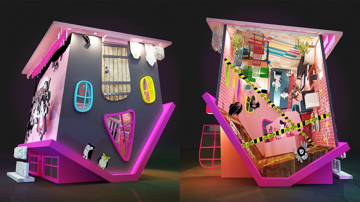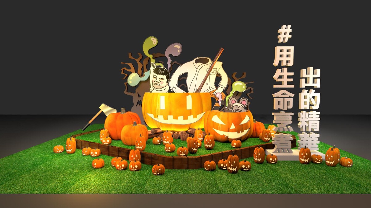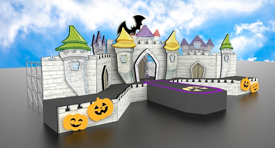 從入口就能看到邪惡城堡大門,並有南瓜人的料理小教室、神秘的魔幻月亮、德古拉的裝死顛倒屋、女巫的歪邀蛋糕列車、海妖的美人魚夢、骷髏的亡靈祭典、笑咧咧萬聖王國城堡等著你,巨大南瓜與月亮與月亮,充滿詭譎又童趣氛圍,還有一座繽紛、如水下水族箱的吸睛裝置,等著你去大拍特拍!