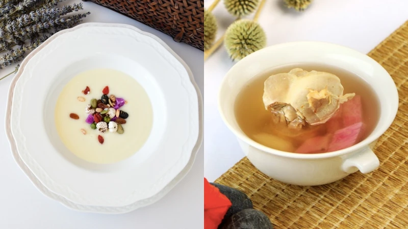 依照一開始的體質檢測,會有多達12種套餐選擇,皆是運用在地當令食材入菜,如用秋季盛產的山藥製成鮮山藥燉土雞湯或山藥濃湯、富含纖維及維生素A的南瓜,或是將新鮮魚肉與綜合堅果拌炒,打造一道道能嚐到食物原味的養身佳餚。