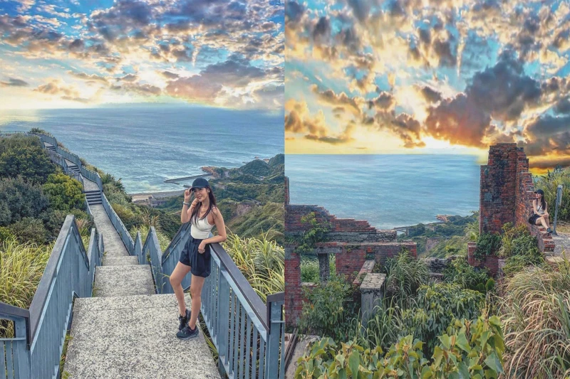 親子健走看這邊!號稱10分鐘就能攻頂的「報時山步道」,由於能開車前往步道口,因此對親子出遊、怕流汗的民眾都非常方便。新建的水泥步道平坦又好走,輕鬆的路程一樣能欣賞絕美風景,登頂後更能擁有360度無死角觀景視野,東北角海景、無耳茶壺山、基隆山的美景都盡收眼底,更是絕佳賞「陰陽海」的位置。秋季過後芒花漸開,更讓海天一色景象更添一絲秋風蕭瑟感。