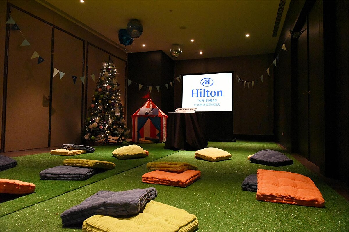 同樣擁有絕佳地理位置的台北新板希爾頓酒店,步行4分鐘就能抵達2020台北歡樂耶誕城!為此推出每周五限定的「繽紛樂」住房專案(即日起至12/25),住客只要穿著彩虹服飾便能獲得彩虹蛋糕與彩虹調酒,即便在年末也要繽紛過節!而在每周六下午三點、周日上午十點舉辦「繽紛樂電影放映會」,能在室內的大片草坪、彩色椅墊觀賞《阿拉丁》、《獅子王》、《冰雪奇緣2》等迪士尼電影,時間只到1/31,逛完童話風格的燈區後,還能在飯店中再次重溫電影中的感動點滴。