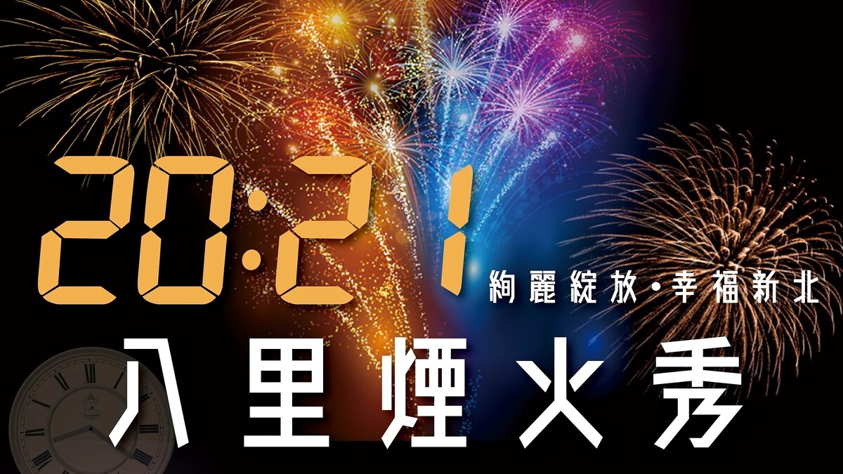 新北市首度舉辦的「2021八里煙火秀」原訂成全台最早煙火秀、於12/31晚上8點21分施放,長達10分鐘的絢爛煙火,包含水中旋轉芭蕾煙火、幸福愛心煙火、3D七彩環繞光環戒子煙火、黃金瀑布煙火、紅邊藍變魔法牡丹、彩色燈籠牡丹等多種款式,打造最浪漫的淡水河畔風景。但12/28新北市政府水利局宣布因考量到疫情發而延期辦理。