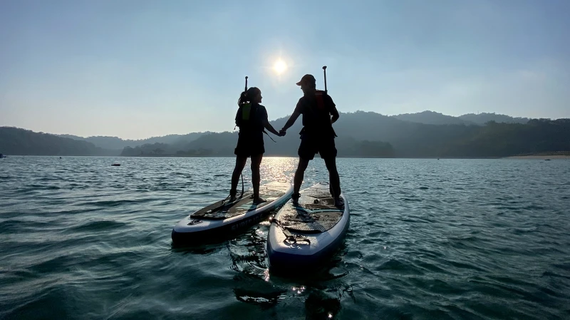 兩人就能成團,在冬天可以選擇早上場或下午場(怕冷建議加件薄外套)。早晨可以在瀰漫著朦朧薄霧的湖中靜待日出曙光;下午則能吹著徐徐微風,划著SUP到船屋上吃中餐或鮮魚湯,配著潭面上的波光粼粼,留下難以忘懷的愜意舒心感受。