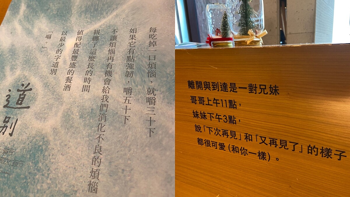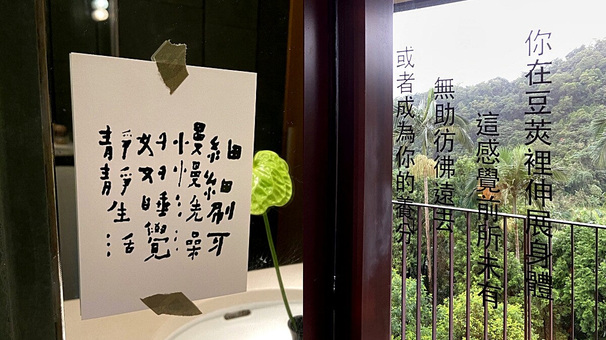 而非入住詩人之房的旅客,同樣能感受這日式詩意度假氛圍!礁溪老爺酒店公共空間共有12處策劃詩展、語錄,讓人在不經意時發現文字的諧趣與幽默,為旅程的難忘回憶再添一筆。