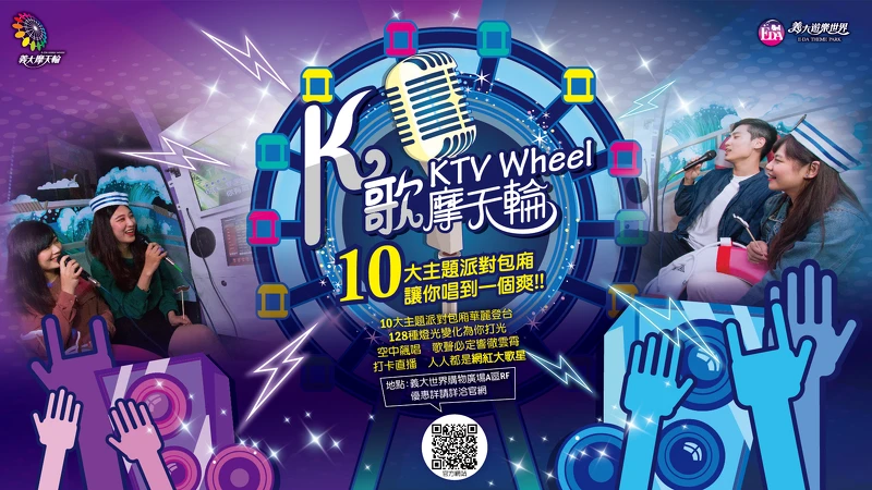 樂園設施除了挑戰心臟強度的海盜船、高速俯衝而下的乘船遊具及驚險刺激的U型雲霄飛車,愛唱歌的人必玩一回全台唯一「K歌摩天輪」!能與三五好友在215公尺高空上盡情飆歌、一邊欣賞窗外的港都美景,勢必成難忘回憶。