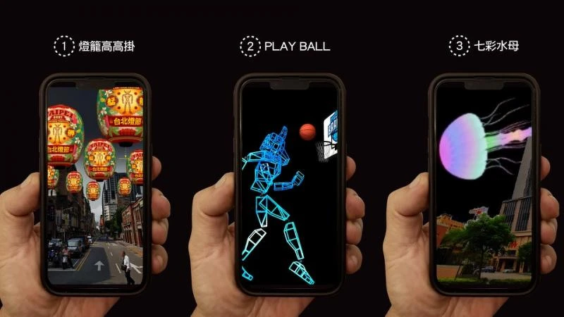 今年首創AR科技虛擬燈區共有三區,只要再活動官網或現場掃描QR code、下載專屬APP《Holoroam》,舉起手機便能欣賞「燈籠高高掛燈區」美麗主燈在天空高高掛起姿態、主燈「New」秀出打籃球英姿、漂浮於萬華艋舺老街的「來自深海的水母」,帶領民眾來場超現實的絢爛奇幻冒險。