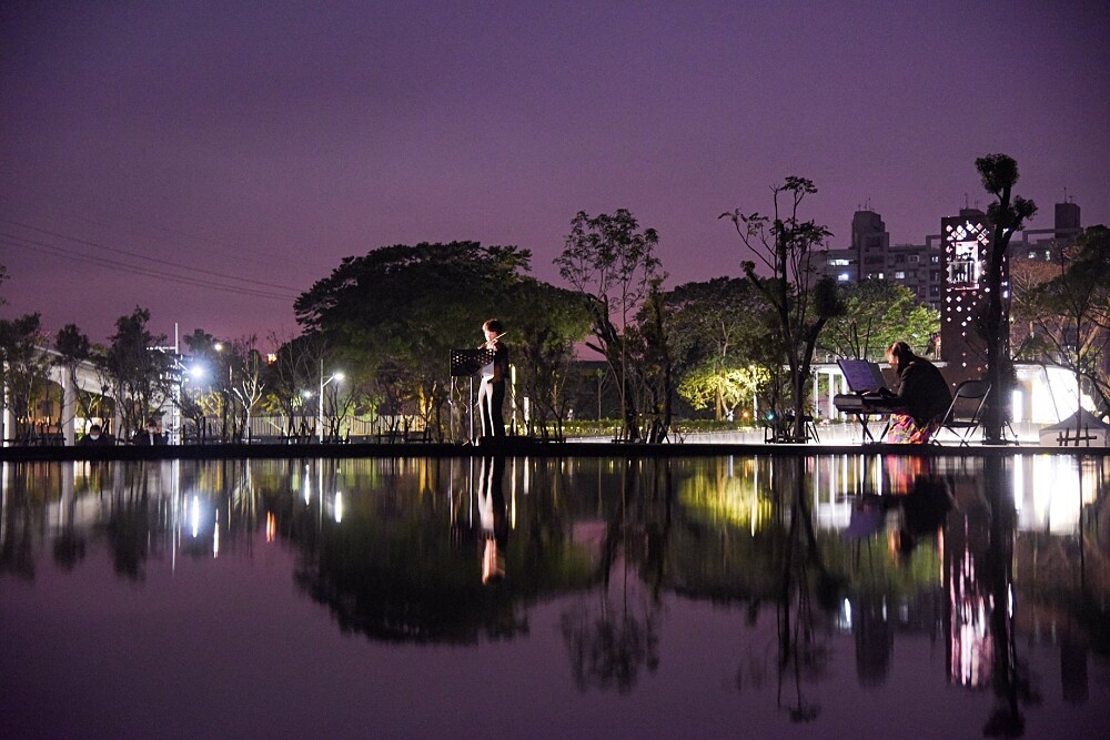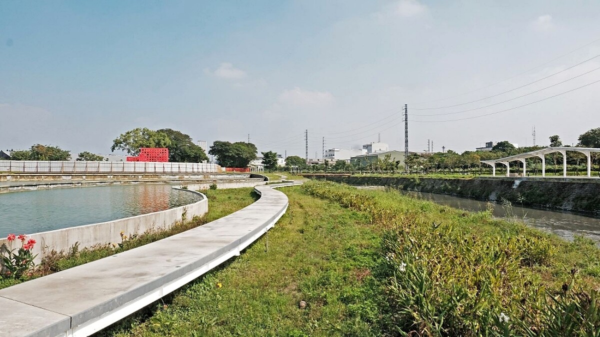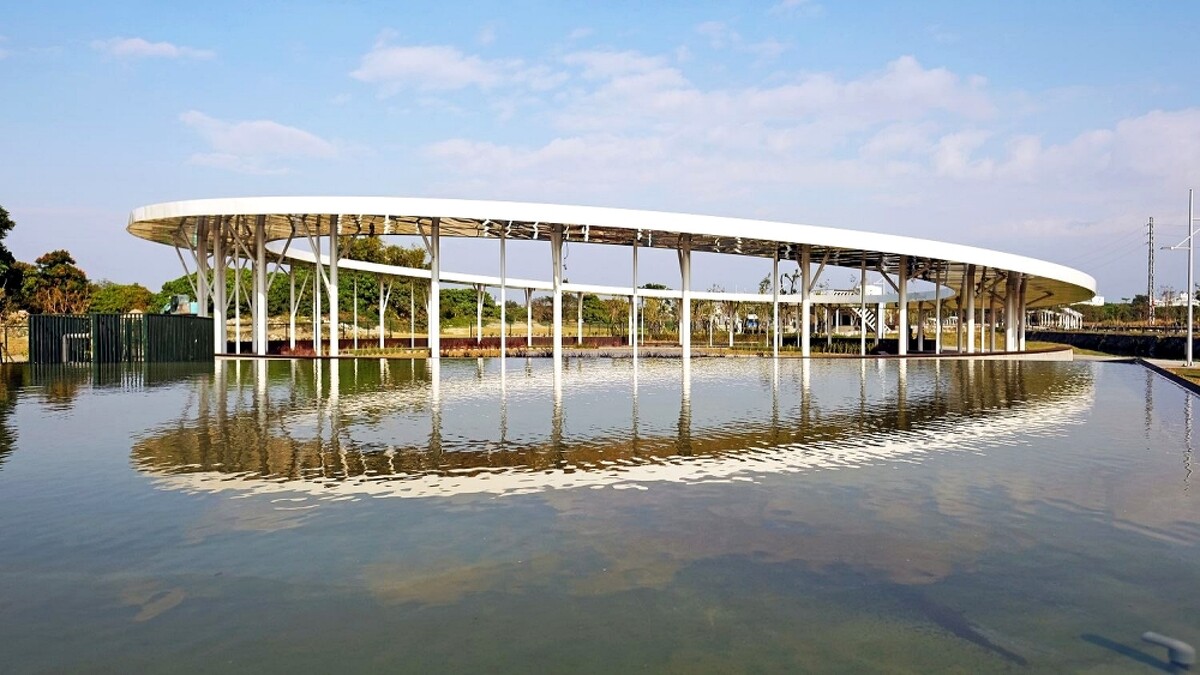 座落殺蛇溪畔,「屏東縣民公園」刻意保留台糖舊紙漿的工業遺址,如地基斑駁牆面、牆上模糊標語,令人重溫出百年歷史風貌;另外也以殺蛇溪的大面積退堤設計為基礎,設計出鏡面水池、鄰水步道、低水護岸等親水空間,值得日夜細細感受這融合古今的全新地景之美。