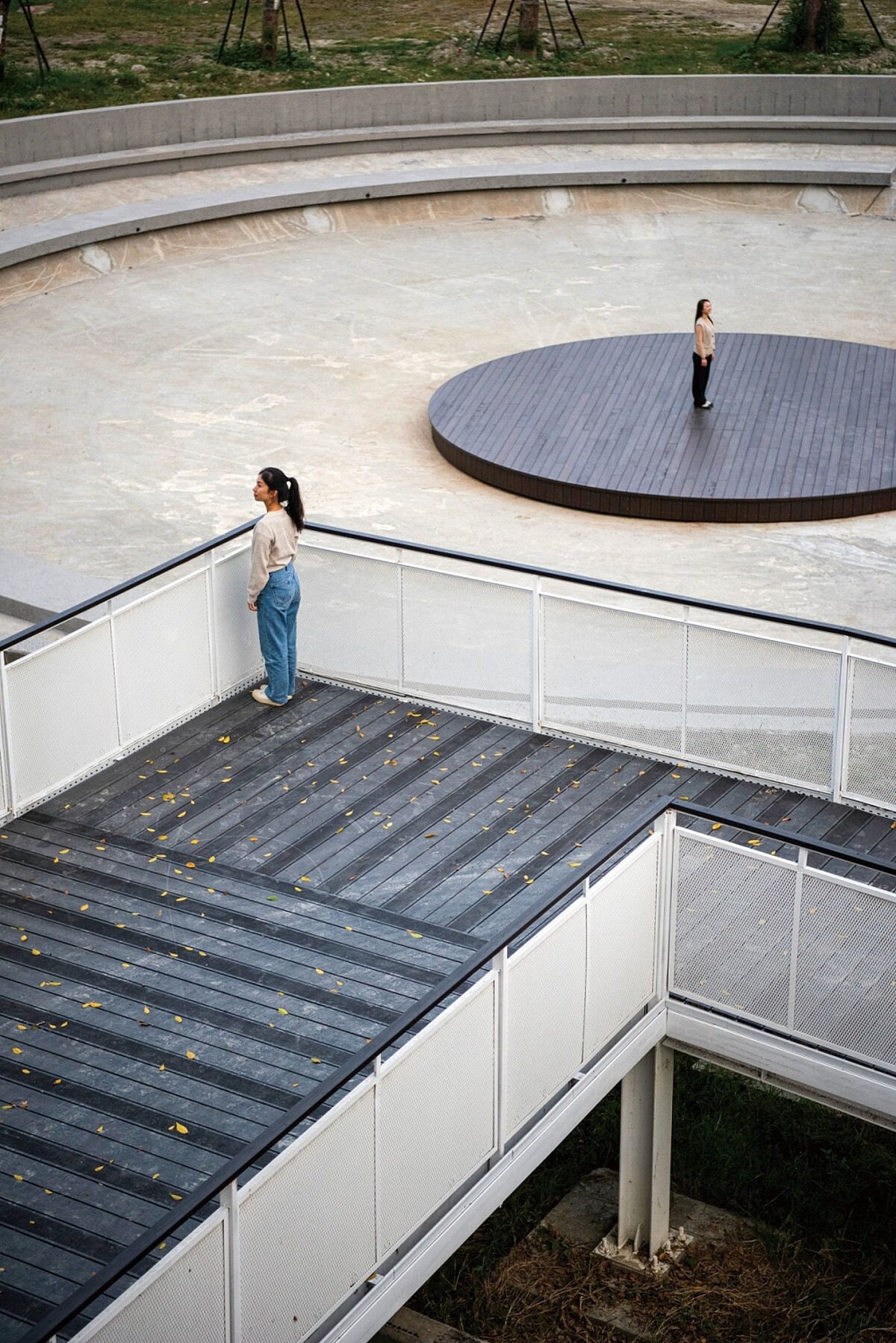 另外有如踩在水面高層的「在水一方」,四周風景的應在身旁水面成唯美景緻;直徑37公尺,集結溜冰、滑板、跳舞、露天電影、戶外表演劇場等多功能用途的「地景劇場」,還能與旁邊的「觀景平台」結合成更多層次大地劇場。