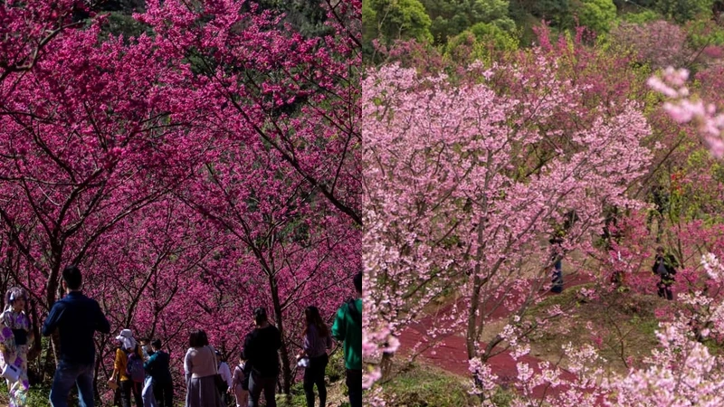 園區內種植2500棵不同種櫻花的「三峽大雄櫻花林」,從1月底至今上演著櫻花接力賽,每天都擠滿慕名前往賞花的民眾。目前輪到墨染吉野櫻、染井吉野櫻綻放約6成,預計228連假也將湧入大批人潮,建議早點去才能享有絕佳觀賞品質。