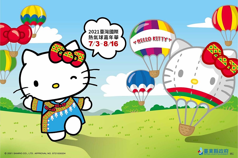 「2021台東熱氣球嘉年華」即將萌翻天際!臺東縣政府與臺灣三麗鷗公司合作,打造「全球唯一HELLO KITTY熱氣球」,身穿布農族藍色傳統服飾亮相,將鹿野高台天空增添少女心,鐵粉必朝聖!而交通部觀光局的「喔熊」造型熱氣球則穿著阿美族的傳統服飾,兩個分別代表縱谷地區為數最多的原住民族群。