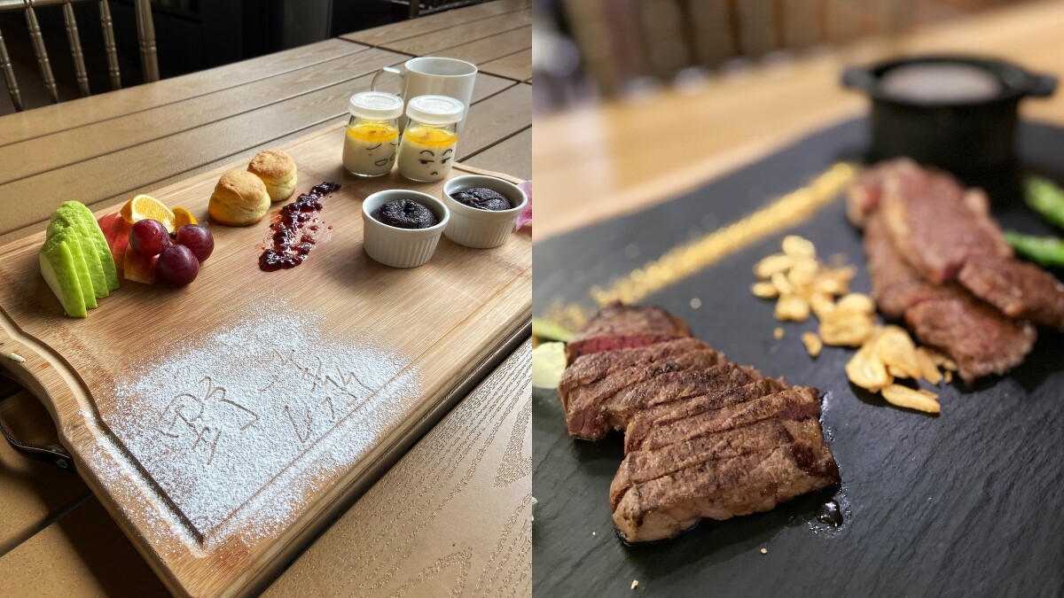 出來玩怎麼能餓到?「野漾莊園」提供一泊四食,並在食材進行升級!下午茶換成現烤熔岩布朗尼、現烤司康為舟車勞頓的旅客補滿活力;晚上接著享用A5和牛牛排、龍蝦干貝海鮮前菜及自助餐點。睡前有滷味與營火棉花糖,早餐則是自助式餐點。值得一提的是,餐廳佈置滿滿燈泡點綴,浪漫氛圍為食材美味再加分!