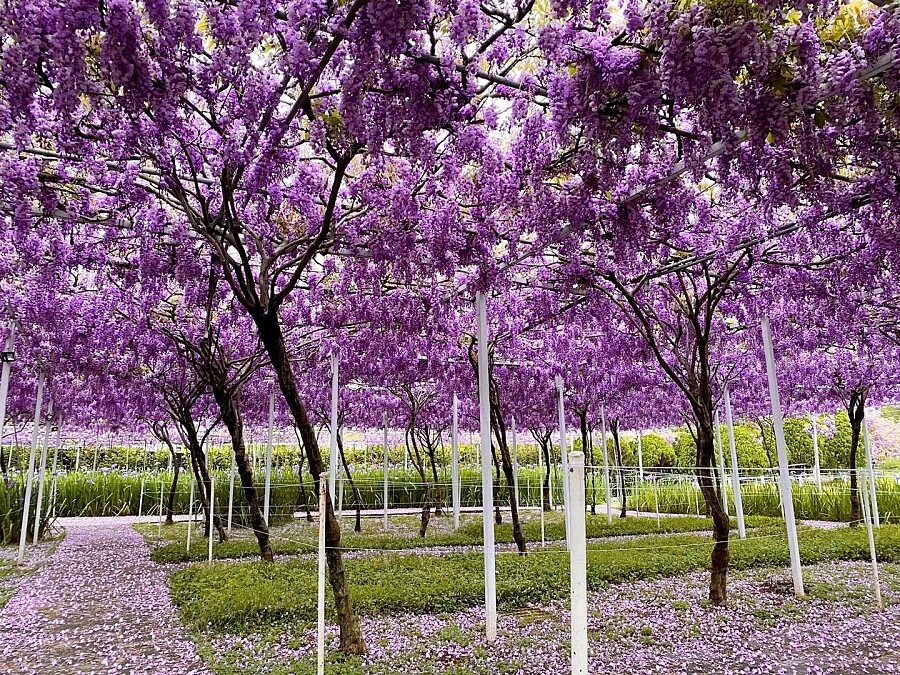由研究紫藤花超過30年的園主賴文鏗先生致力打造的「紫藤咖啡園」,一號店及二號店占地破萬坪,多次與日本園藝技術人員交流,打造全台最大、唯一被日本認可的紫藤花園。即便因為疫情關係不能出國,只需走訪一趟北台灣便能感受置身異國的夢幻景色。