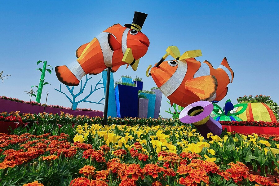一年一度的「2021桃園彩色海芋季」是桃園大園限定的彩色海芋花海,今年以「海洋奇芋記」為主題,藉由7件海洋生物戀愛的大型花毯裝置藝術,尺寸最大的為5公尺高的「愛神美人魚」,並各自有不同科普小知識,打破大家對於花卉活動既定印象,在賞花之餘也能學習新知,並感受愛情令人嚮往的面貌。