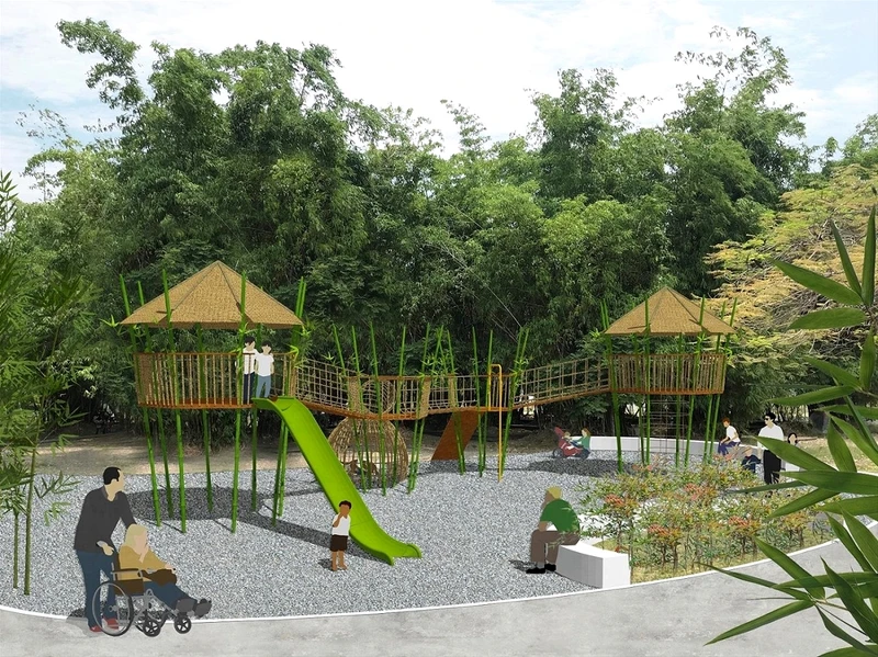 當想起武俠片,綠意竹林便在心頭油然而生嗎?這樣的場景未來將成為全新遊戲場背景!近年來積極發展的高雄,又將迎來全新特色遊戲場。座落岡山河堤公園,以「竹」作為主要意象,讓遊玩的民眾、小朋友們當一回江湖俠客,還會依照「武功程度」規劃,不妨揪團去挑戰!