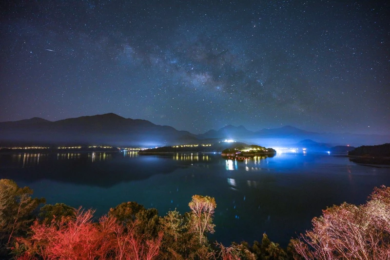 南投日月潭宛如仙境般的銀河星空美景也吸引不少人朝聖!在涵碧樓也能欣賞到,每年從四月開始大約自晚間11:30過後,在客房露臺就可以見到天際畫著一條淡淡奶白色的銀河和滿天星斗升起!