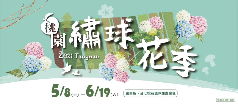 起源於30年前,一對夫妻從日本引進繡球花,於復興區三民里培育,成為國內首位促成栽培繡球花成功的業者,將於5/8舉辦第一屆的「2021桃園繡球花季」。遊客能欣賞到包含白色、粉色、桃紅色、藍色、紫色等不同風情繡球花盛開,數量達到破萬株,相當引人入勝。