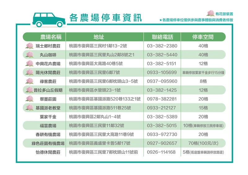 地址:桃園市復興區枕頭山商圈主花區/台七線14.5公里