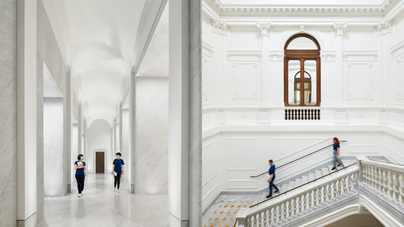 光從外觀便能嗅出向豐富歷史與文化致敬的精神,一步入店內,能看到由當地卡拉拉大理石打造的裝飾細節,一道紀念性樓梯更可回溯至1888年。亮點還有與修繕保護團隊攜手、耗時數千個小時修復精緻的兩大幾何圖案手繪天花板「Dawn」、「Dusk」,同樣能回味1900年代初期風貌。