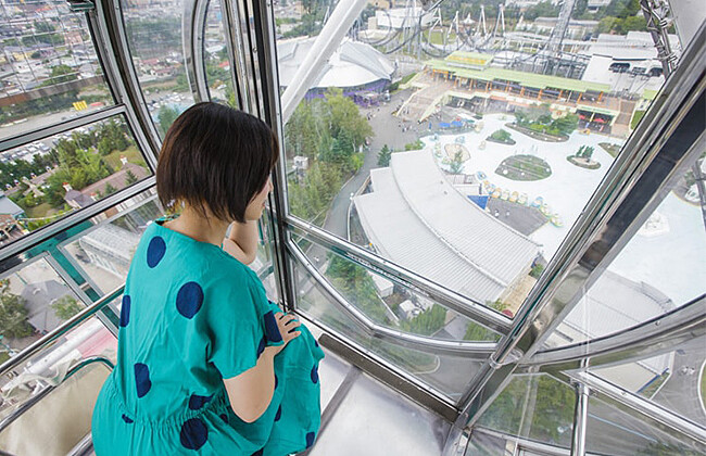 一台「監獄摩天輪」車廂只能容納2人,用意為「向富士山懺悔你的罪惡」。遊客得站在不鏽鋼製成的牢籠中,隨著摩天輪緩緩登上高空,再因為鏤空縫隙設計,全程11分鐘的時間內能感受到高空風速吹拂,五味雜陳的感受加上能遠眺富士山美景,絕對會留下此生難忘回憶。