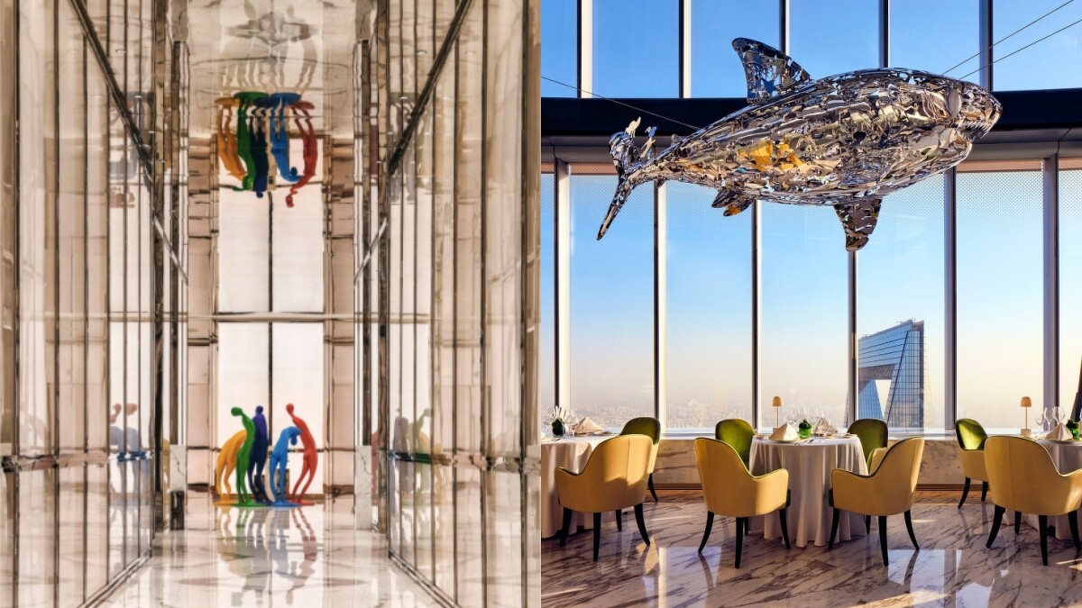 除了是全球最高酒店,酒店內陳列上千件藝術品,呈現出古今中外藝術交織之美。位於84~120樓層高的多間餐廳酒廊,分別有著羅馬穹頂、象徵中國風的大紅色門樓。座落120層樓、為全球最高餐廳的「天之錦」,入口處擺放30米長的義大利馬賽克鑲嵌壁畫,多元藝術品為旅宿增添雅致氣息。