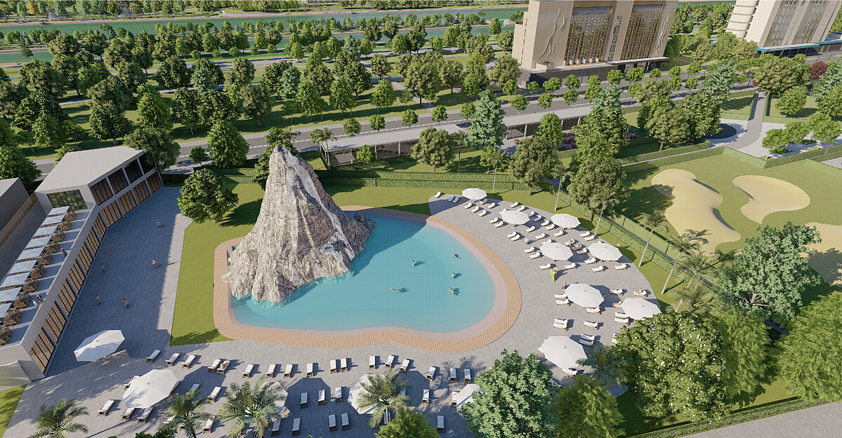 度假村客人可於綠化行人區和寬敞的公共空間,享受周圍環境。入口將以傳統圖案裝飾,讓人聯想到雄偉的雷吉斯坦廣場。度假村也有運動場、單車道、附設游泳池的火山水上樂園,以及咖啡店和酒吧,提供多個娛樂設施。