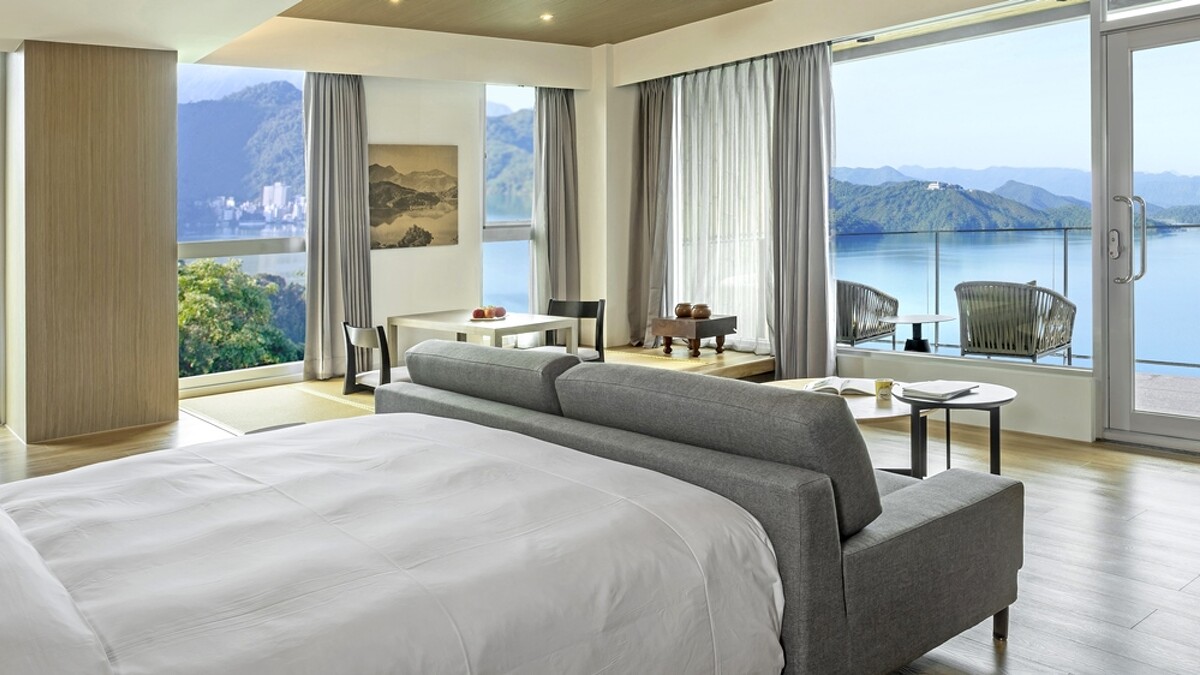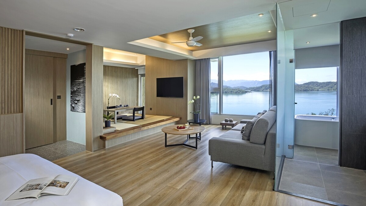 繼以高山茶為主題的「桃城茶樣子」奪下「全台最美飯店」冠軍封號後,「承億文旅潭日月」客房設計也值得期待!一共設置48間客房、7種房型選擇。大片落地窗引入令人迷醉的湖光山色,不論是愜意坐在沙發或泡澡都能細細欣賞。