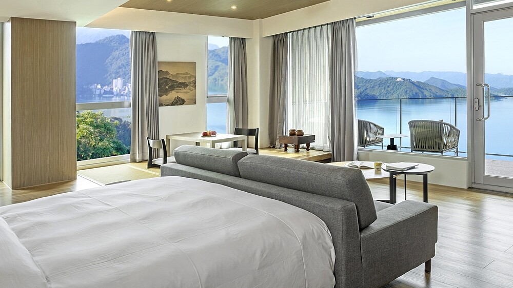 繼以高山茶為主題的「桃城茶樣子」奪下「全台最美飯店」冠軍封號後,「承億文旅潭日月」客房設計也值得期待!一共設置48間客房、7種房型選擇。大片落地窗引入令人迷醉的湖光山色,不論是愜意坐在沙發或泡澡都能細細欣賞。