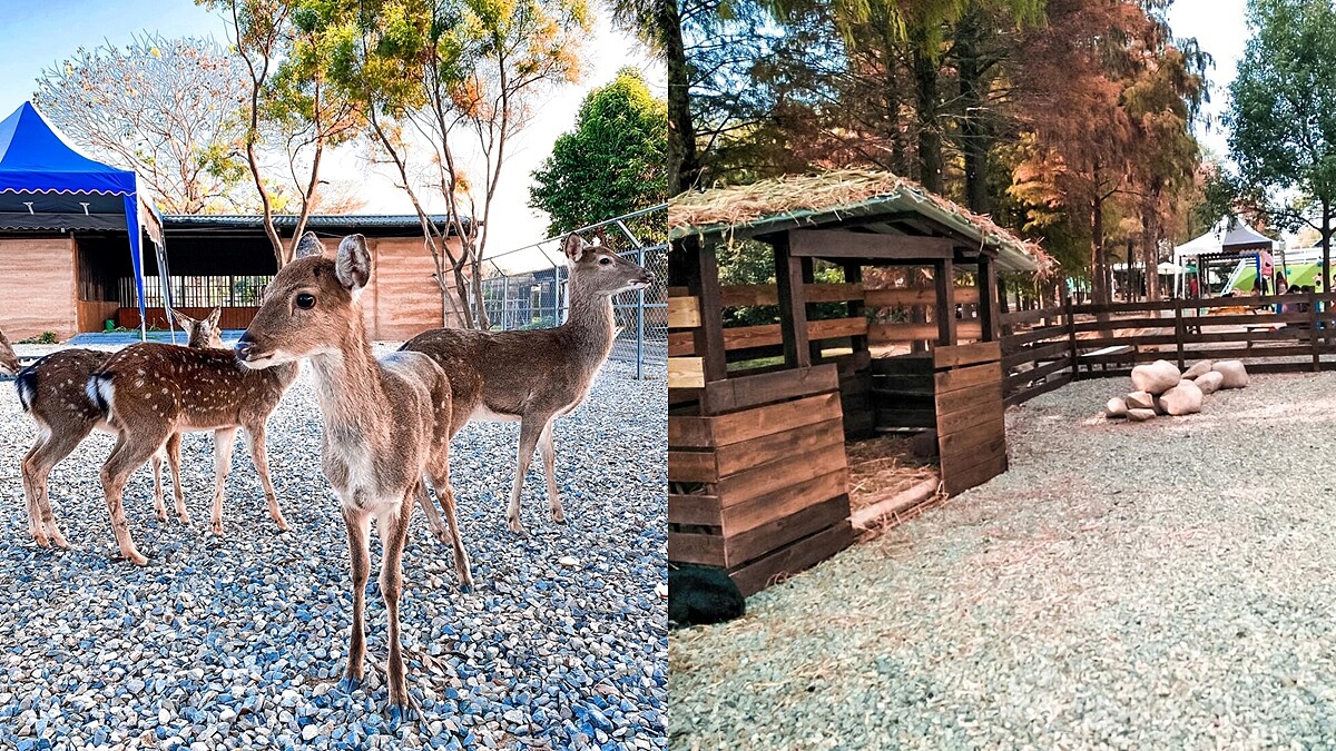 另外一大特色,便是能與可愛動物互動!園區內能餵食溫馴梅花鹿,還有山羊、兔子齊賣萌,畫面相當療癒。還有四季皆美、會在秋天換上夢幻顏色的大片落羽松,園方還貼心在此區域放置許多鋪著坐墊的稻草堆,方便網美們在此拍一波愜意大片。