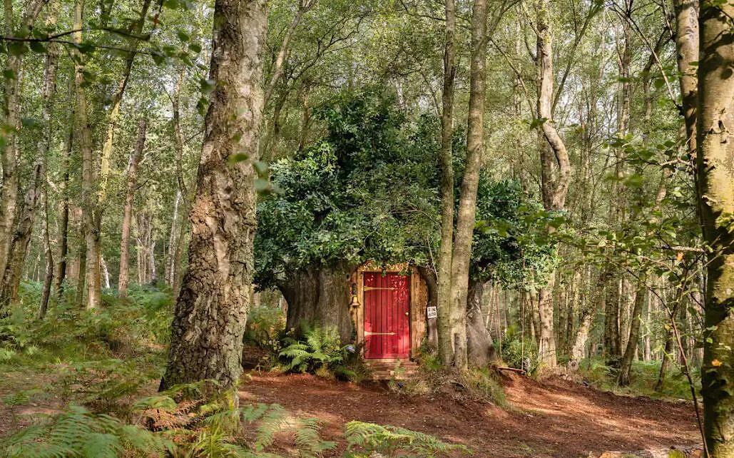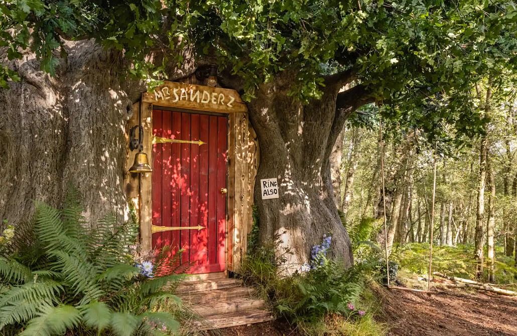 「小熊維尼樹屋」光是外觀便叫人神遊,位於英國新澤西州埃塞克斯郡的納特利Nutley鎮森林中,紅色木門上有寫著「Mr.Sanders」的門框招牌,庭園中還擺設餐桌,方便大家進行一場放鬆身心的夢幻下午茶。