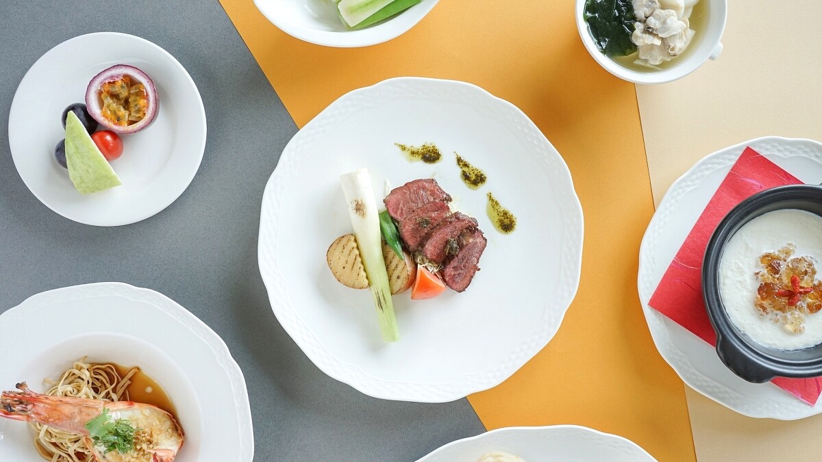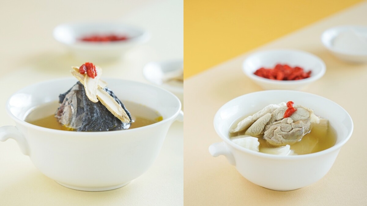 秋季養生之道,首重「除濕養肺」,承襲養生之旅慣例,將旅客分為為燥熱、體寒或痰濕三種體質類別,更推出一系列將白色食材入菜的溫補湯品,如茯苓山藥燉雞湯、百合帶芽鮮蛤湯、西洋蔘燉烏雞湯等,為各種體質旅客滋補。餐點最後還有甜點「桃膠杏仁露」,讓人在涼爽秋夜中養顏潤燥。