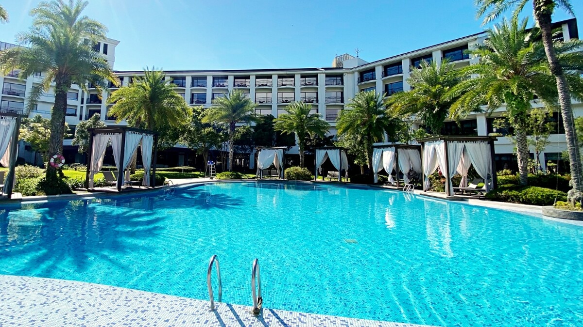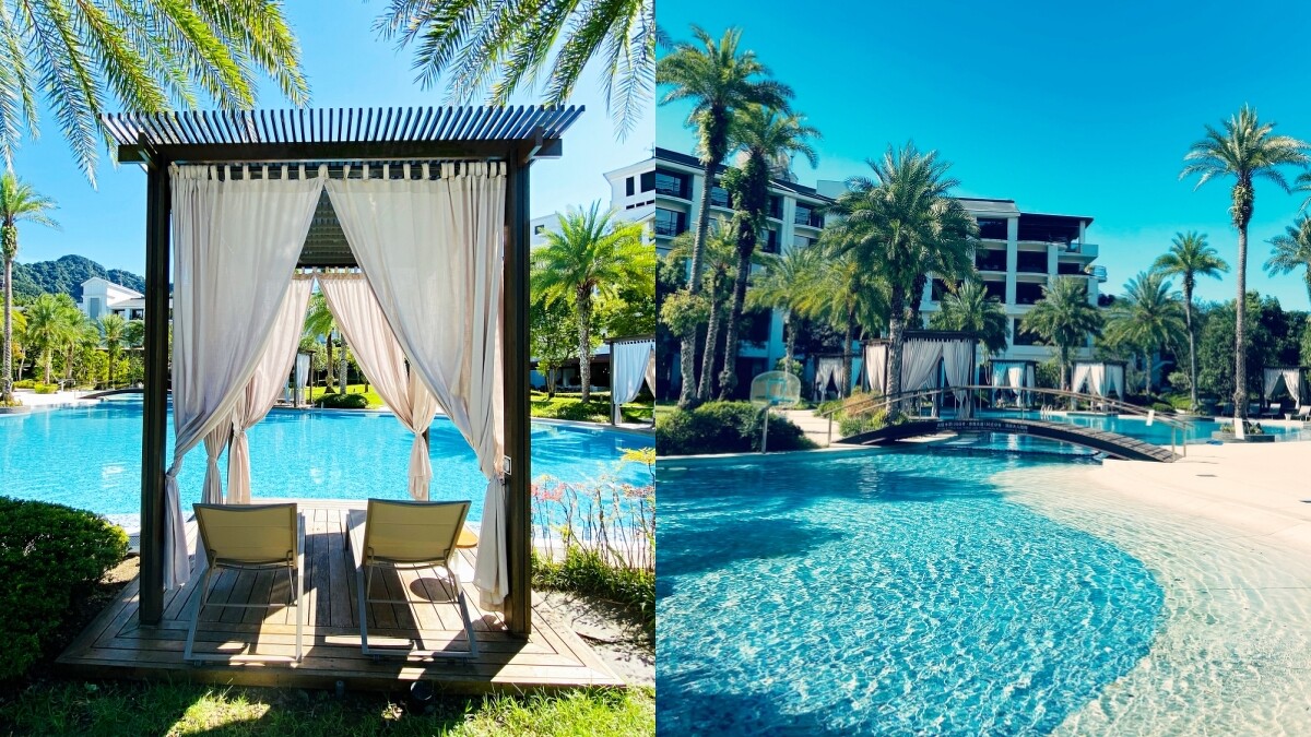 不只有異國風情泳池,205間客房、套房也令人捨不得退房!每間房以白色、木質交織出溫馨典雅質感,並皆設有獨立陽台能眺望戶外泳池畔或綠意山景,晚上則能躺進「天夢之床」徹底紓壓。若想留下深刻回憶,擁有開放式溫泉按摩浴池的SPA套房、全台唯一獨立戶外透明泳池的總統套房都值得考慮。