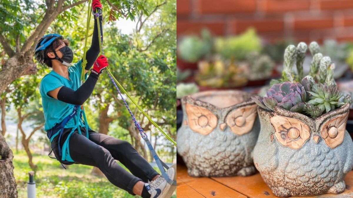 不必擔心空閒時間太無聊,「清水那方」園區內設置遊憩區、活動草坪可以讓小朋友放電外,更規劃多種體驗活動能加購參加,像是貓頭鷹多肉盆栽DIY、石頭彩繪、樹枝框畫或木片創作。喜歡戶外行程的人推薦挑戰攀樹、騎自行車飽覽八卦山景色。