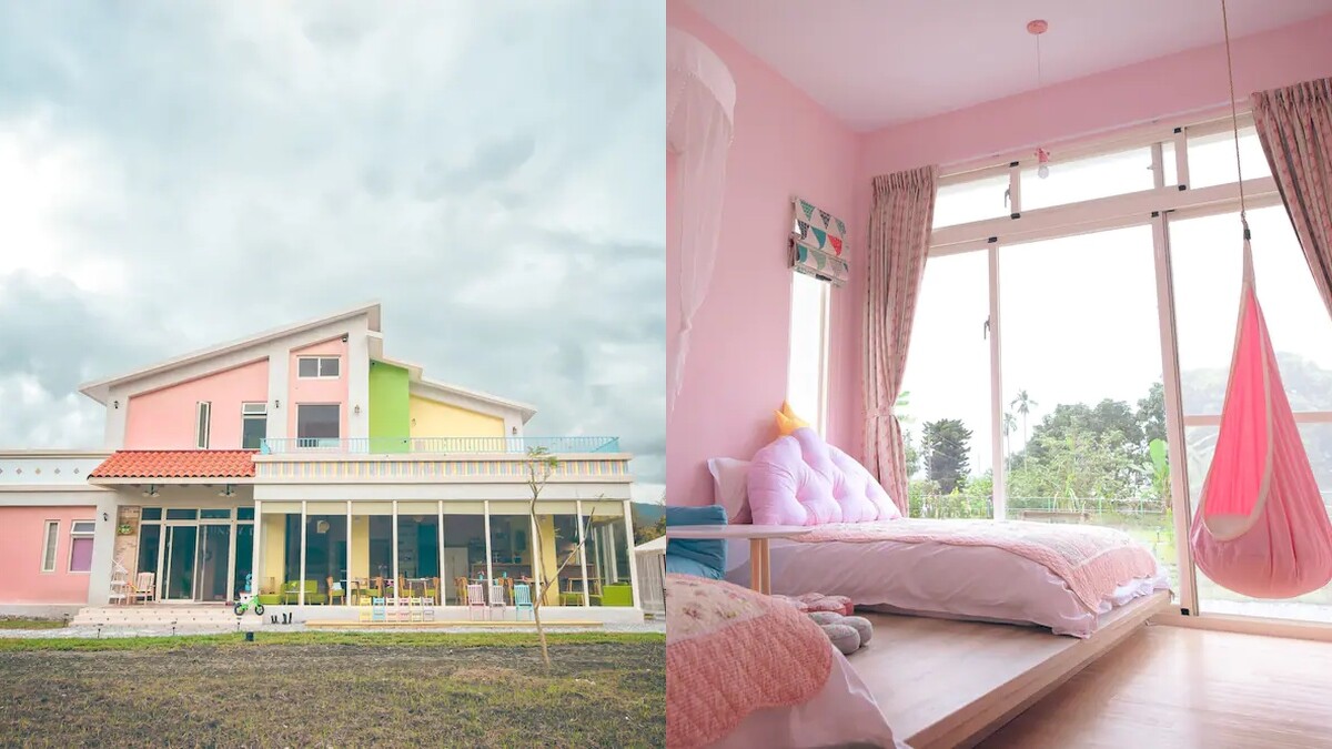 攜家帶眷的旅客,首選有著好山水風光的花蓮特色親子民宿「晴天裡飛翔莊園」!整體外觀以馬卡龍色系設計,成為田園中不可忽視的粉嫩亮點,館內的園景四人房則以插畫風格為主軸,搭配粉紅色牆面、古典花卉家飾品、遊戲設施貫穿,瀰漫著少女心浪漫情懷,是能使人盡情放鬆的愜意空間。