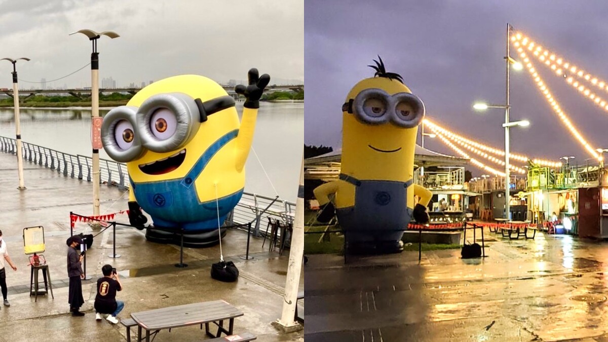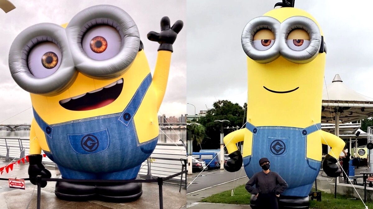 是許多台北人看夕陽、吃美食好去處的大稻埕碼頭貨櫃市集,近日加入新朋友,而且還是巨大版!兩大電影主角Bob、Kevin分別放大成5~7公尺、矗立在河岸旁,還舉起手做出打招呼動作,令人一看到就狂噴少女心。