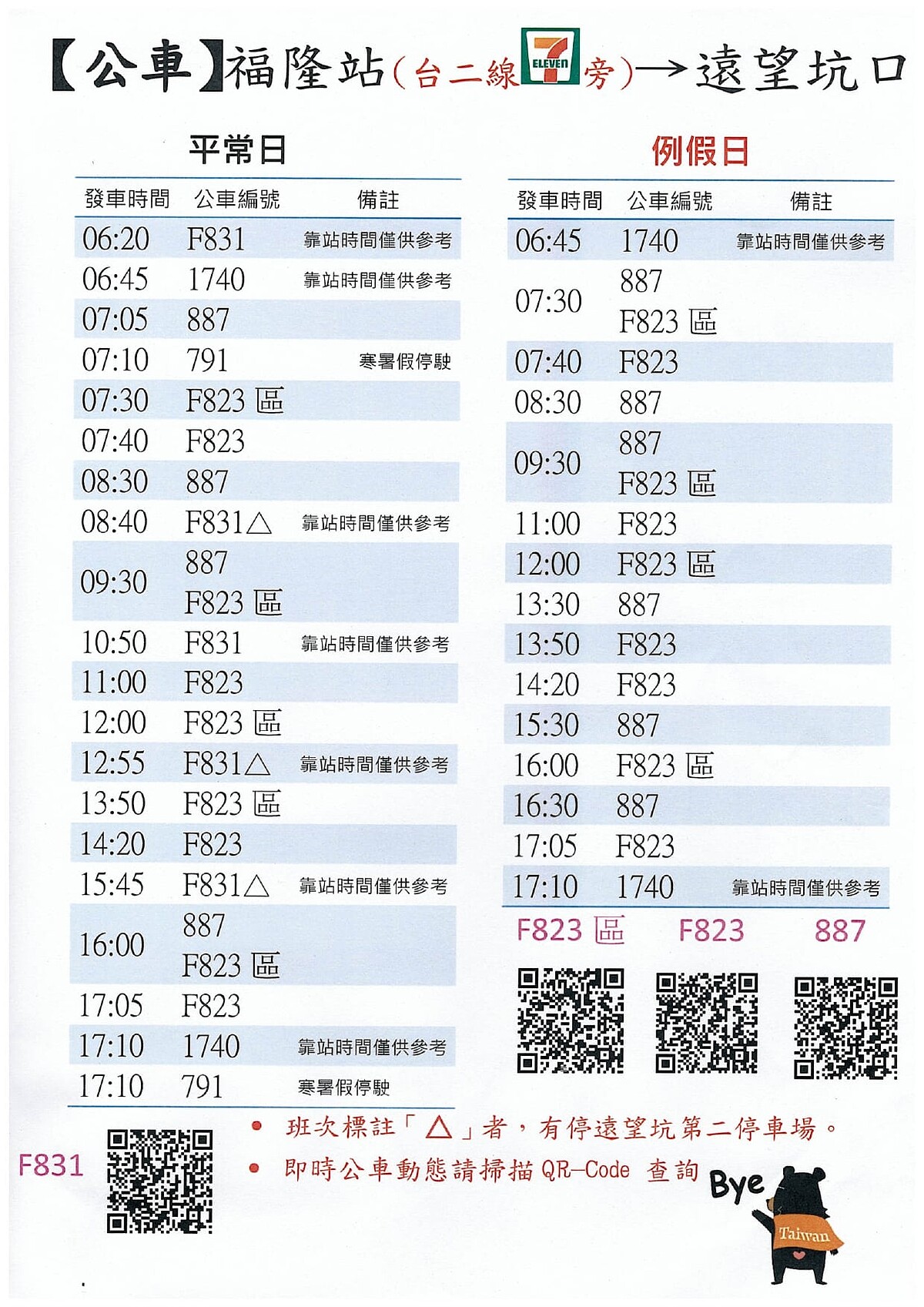 交通:公車平假日時刻表如下