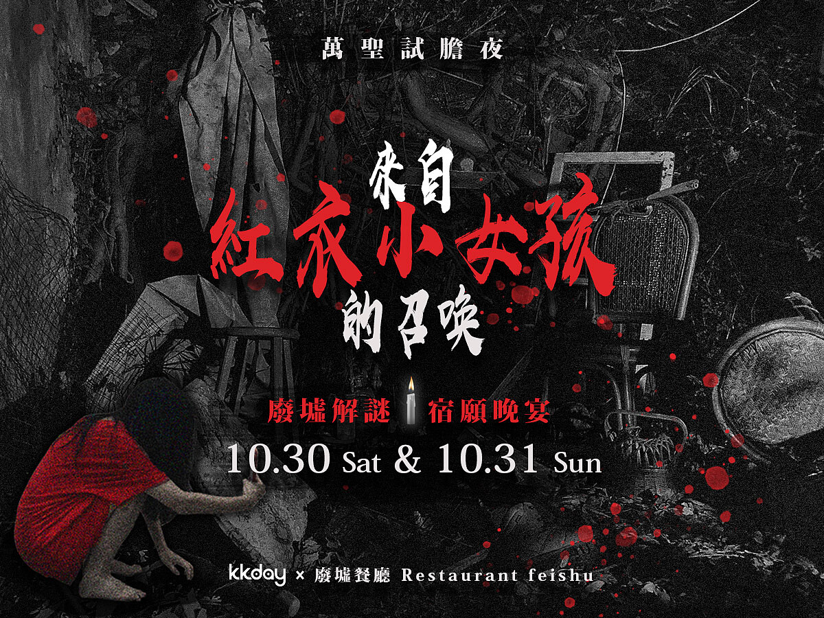 KKday聯手宜蘭廢墟餐廳,帶領你前往壯圍鄉60年歷史眷村廢墟進行解謎任務,活動時間長約2.5~3小時,會由關主帶隊到壯圍海岸進行夜路探險。任務成功後能享用萬聖節大餐,玩膩扮裝的人可以揪團來場難忘的驚悚節日回憶。