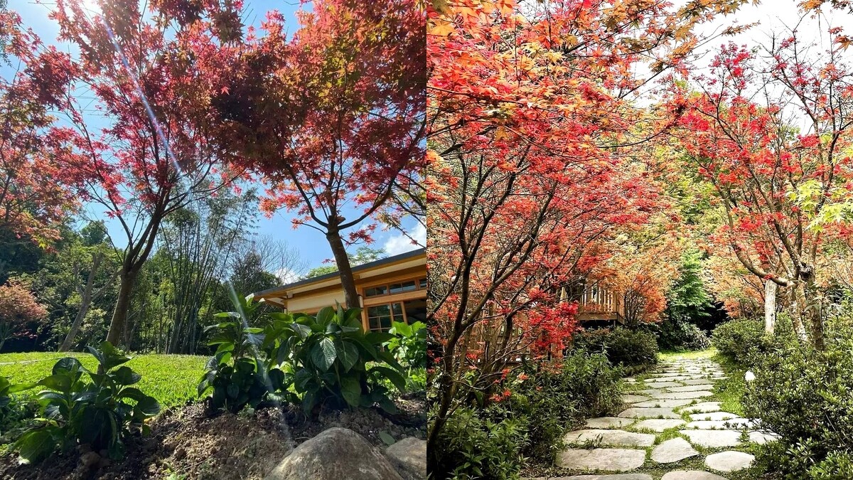 台北人想賞楓?陽明山就是首選!一直都是熱門賞楓景點的福田園教育休閒農場,有100多棵香似於楓樹的日本紅槭環繞著園區,春季、秋季都能看到轉紅的美麗景色。在大自然景色之外,園區內還有一座繩索吊橋、日式建築造景都是不能錯過的拍照景點,在風光明媚天氣下有著如置身日本的錯覺。