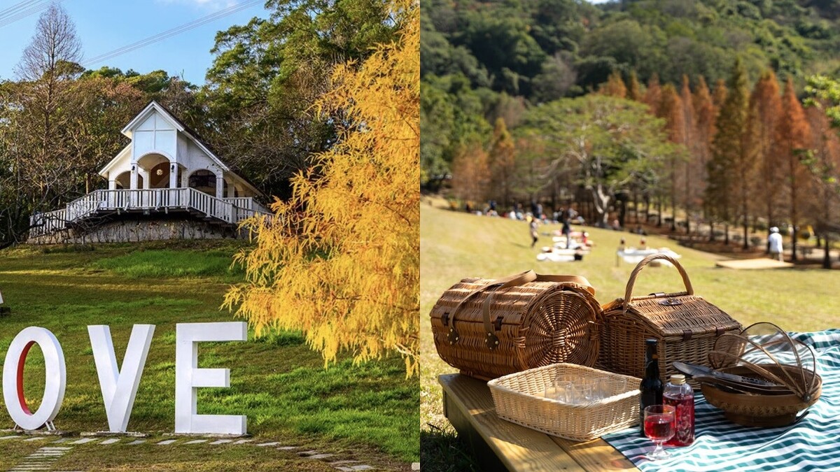 2021年初才開幕的新竹「小森之歌」,猶如世外桃源般能卸下身心壓力,園區內有白色教堂、LOVE造景、玩沙場、噴泉池塘,甚至能坐在大草坪上野餐,不可錯過的便是一條浪漫滿分的落羽松大道,在這個時候造訪便能同時拍美照、享受紅澄澄山頭的夢幻景色。
