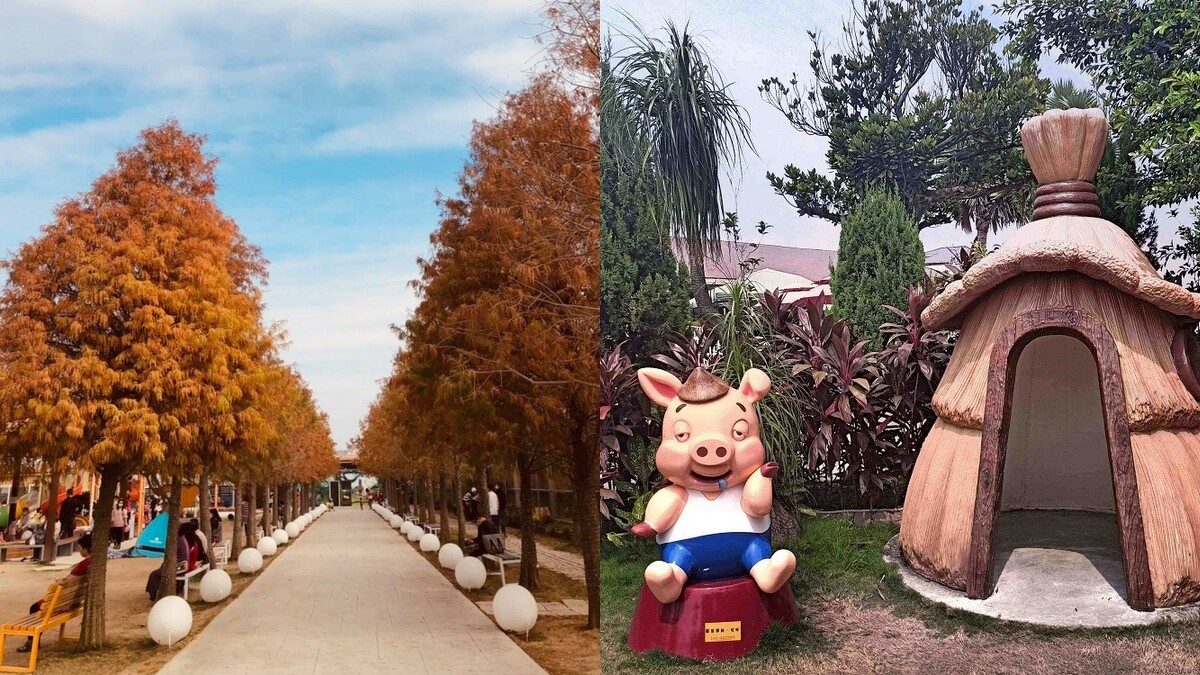 有著一隻巨無霸粉紅豬作為招牌的「嘉義三隻小豬觀光農場」,園區內飼養近30種可愛動物,有水豚、狐獴、駱馬、梅花鹿、綿羊豬等等,是親子出遊熱門推薦景點。而裡頭有一條「隱藏版景點」落羽松大道,會隨著時節變冷漸漸轉紅,超整齊的排列儼然是網美大片取景地,一家大小都能玩得盡興。