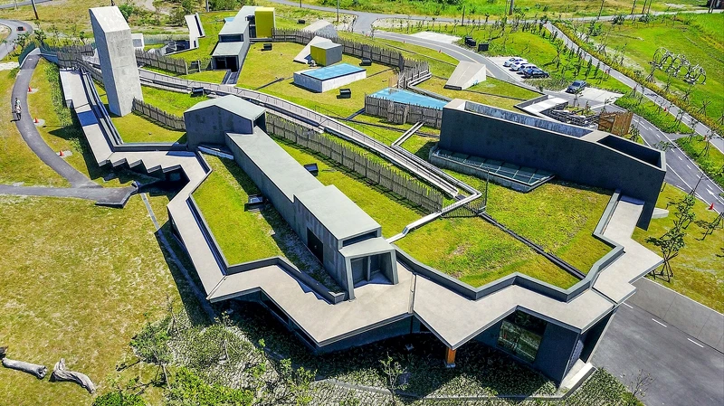 一旁的壯圍沙丘旅遊服務園區也值得留點時間造訪,由建築師黃聲遠以「空出谷地,看見沙丘」為核心概念設計,結合自然元素,呈現出沙丘地景風貌及沙穴空間,而兩旁的田野與池水環境相襯出的恬靜氣息,使人能放慢腳步、拋開日常壓力。從遊客中心、沙丘展覽館、森林島嶼等不同空間規劃都可以細細品味。
